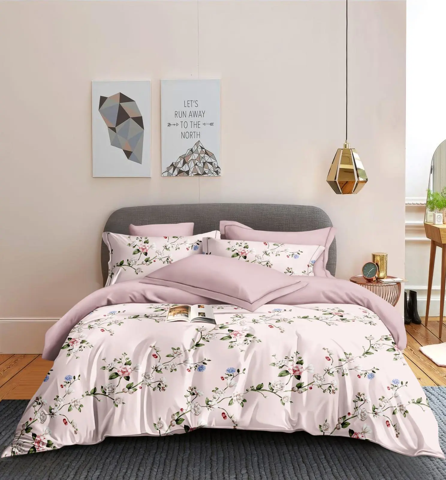 מצעים למיטת יחיד שמנת מסגרת שחורה
